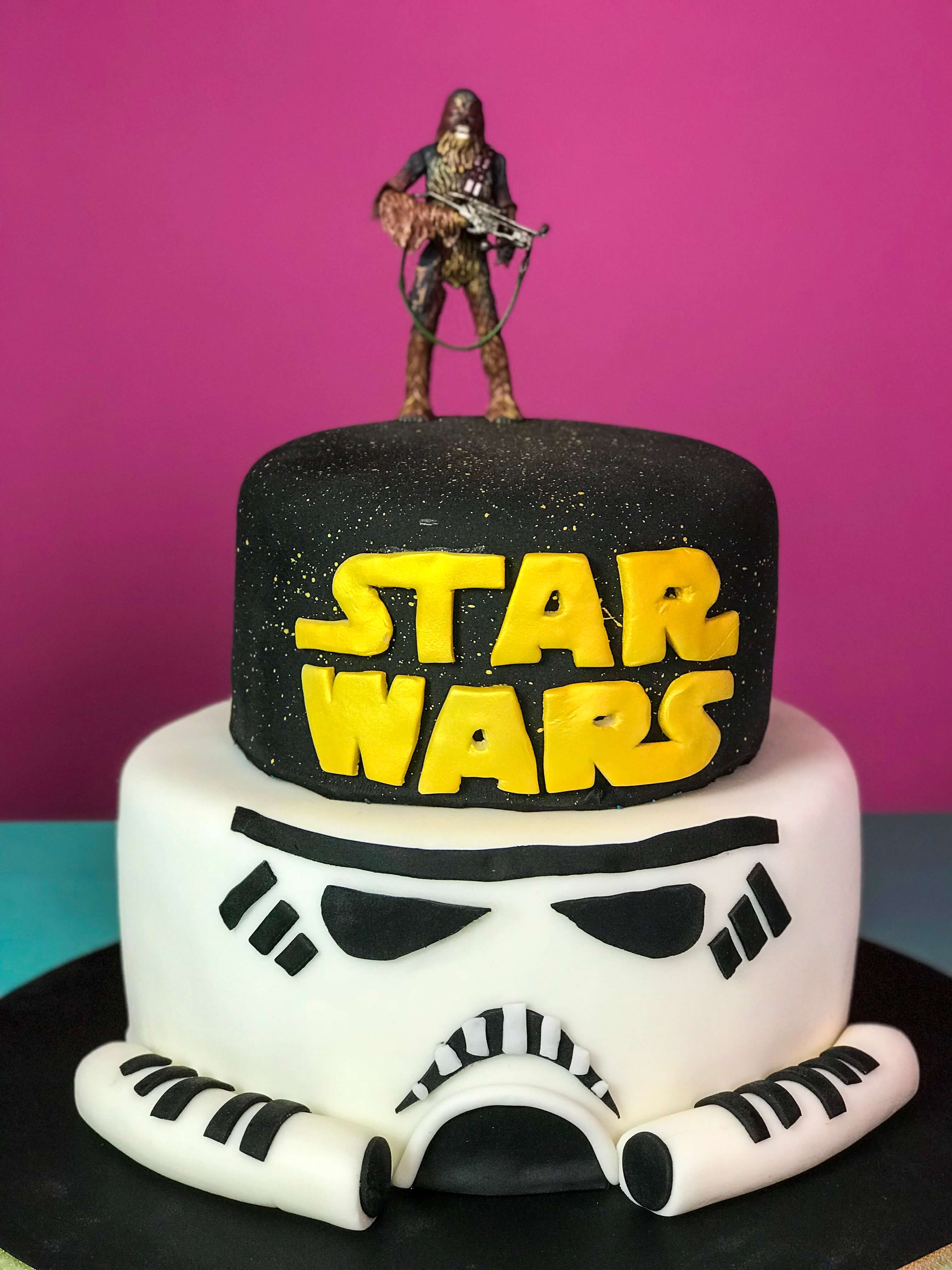 Jetzt kommt noch deine Star Wars Figur auf dir Torte ? Bei mir wars Chewbacca ?